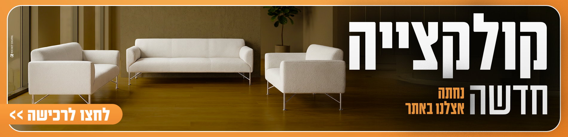 ספה תלת מושבית בצבע לבן מבד בוקלה